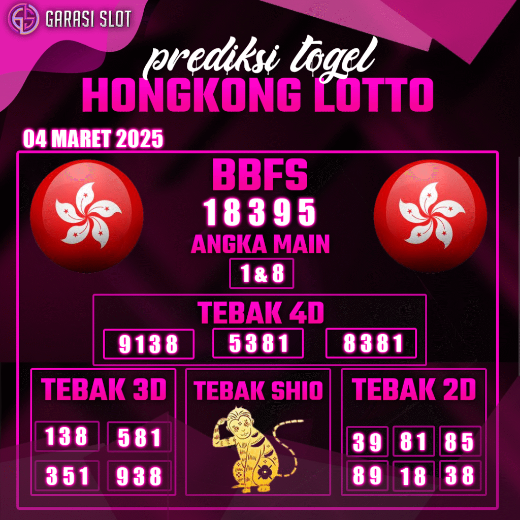Prediksi togel Hongkong hari ini yang ditawarkan Prediksi GARASISLOT akan membantu Kamu dalam menyelesaikan catatan menyiapkan angka main. Prediksi GARASISLOT adalah halaman khusus untuk membocorkan angka prediksi seputaran pasaran togel terbesar di Indonesia. Hasil prediksi yang dirilis oleh tim khusus situs togel terpercaya GARASISLOT ini mempunyai tingkat akurat terbaik. Situs ini memungkinkan Kamu untuk mendapatkan informasi seputaran shio, buku mimpi, data keluaran terakhir serta menyaksikan live draw. Jadi cukup dalam satu website seluruh penikmat togel online dapat memperoleh informasi bermain. Prediksi Garasislot juga memiliki rekomendasi bandar togel terpercaya yang siap melayani dan membayar seluruh kemenangan hadiah jackpot.