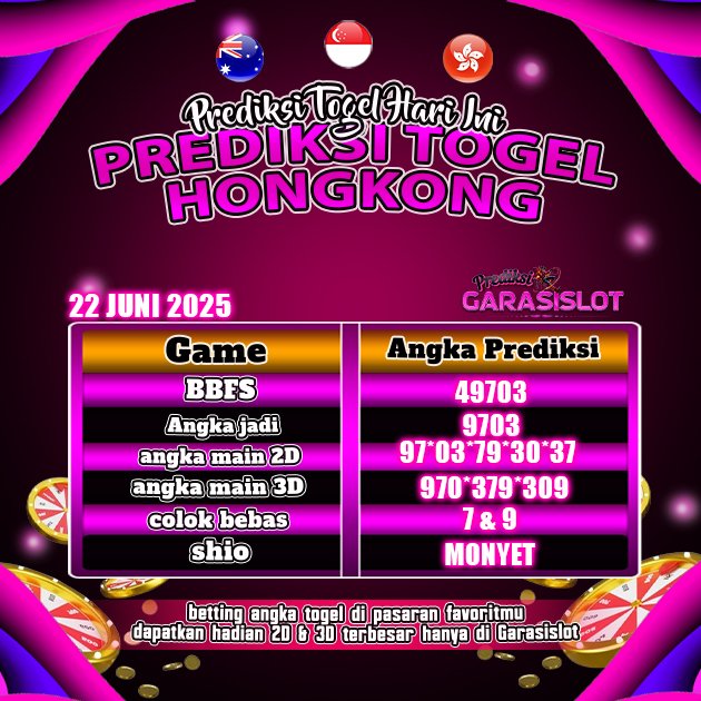 Prediksi togel Hongkong hari ini yang ditawarkan Prediksi GARASISLOT akan membantu Kamu dalam menyelesaikan catatan menyiapkan angka main. Prediksi GARASISLOT adalah halaman khusus untuk membocorkan angka prediksi seputaran pasaran togel terbesar di Indonesia. Hasil prediksi yang dirilis oleh tim khusus situs togel terpercaya GARASISLOT ini mempunyai tingkat akurat terbaik. Situs ini memungkinkan Kamu untuk mendapatkan informasi seputaran shio, buku mimpi, data keluaran terakhir serta menyaksikan live draw. Jadi cukup dalam satu website seluruh penikmat togel online dapat memperoleh informasi bermain. Prediksi Garasislot juga memiliki rekomendasi bandar togel terpercaya yang siap melayani dan membayar seluruh kemenangan hadiah jackpot.