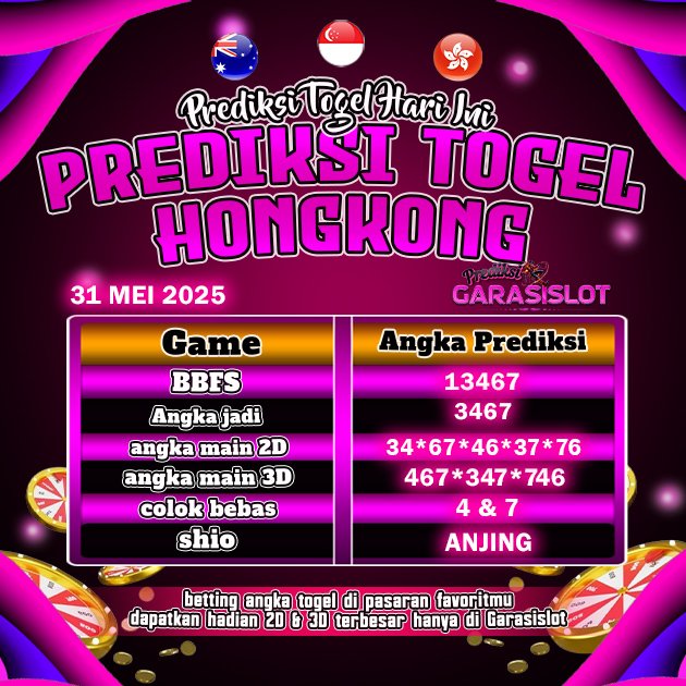 Togel Hongkong adalah pasaran terlaris yang hampir tidak pernah tergantikan. Setiap harinya ribuan pengguna memburu dan mencari prediksi jitu seputaran togel Hongkong hari ini.prediksi togel Hongkong lotto 31 Mei 2025 terbaik.