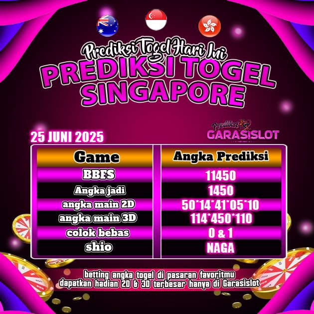 Togel SINGAPORE adalah pasaran terlaris yang hampir tidak pernah tergantikan. Setiap harinya ribuan pengguna memburu dan mencari prediksi jitu seputaran togel Singapore hari ini. Nah, dibawah ini adalah prediksi togel Singapore Pools 25 JUNI 2025 terbaik.