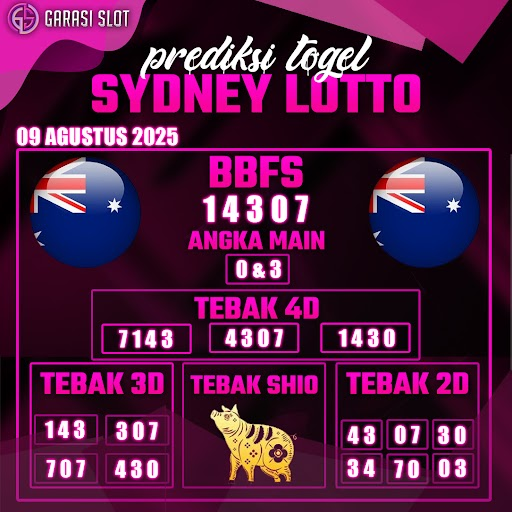 Togel SYDNEY adalah pasaran terlaris yang hampir tidak pernah tergantikan. Setiap harinya ribuan pengguna memburu dan mencari prediksi jitu seputaran togel Sydney hari ini. Nah, dibawah ini adalah prediksi togel Sydney Lotto 09 AGUSTUS 2025 terbaik.