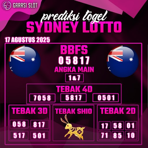 Togel SYDNEY adalah pasaran terlaris yang hampir tidak pernah tergantikan. Setiap harinya ribuan pengguna memburu dan mencari prediksi jitu seputaran togel Sydney hari ini. Nah, dibawah ini adalah prediksi togel Sydney Lotto 17 AGUSTUS 2025 terbaik.