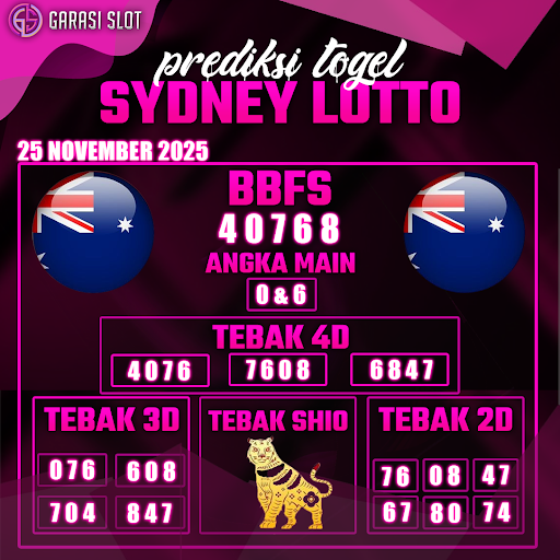 Togel SYDNEY adalah pasaran terlaris yang hampir tidak pernah tergantikan. Setiap harinya ribuan pengguna memburu dan mencari prediksi jitu seputaran togel Sydney hari ini. Nah, dibawah ini adalah prediksi togel Sydney Lotto 25 NOVEMBER 2025 terbaik.