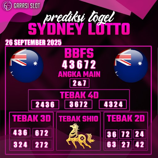 Togel SYDNEY adalah pasaran terlaris yang hampir tidak pernah tergantikan. Setiap harinya ribuan pengguna memburu dan mencari prediksi jitu seputaran togel Sydney hari ini. Nah, dibawah ini adalah prediksi togel Sydney Lotto 26 SEPTEMBER 2025 terbaik.